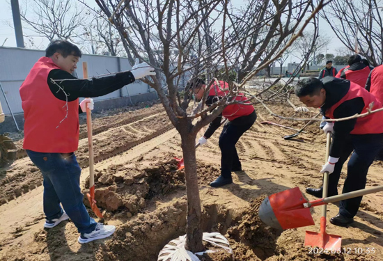 活動現(xiàn)場黨旗飄揚(yáng),黨員干部熱情高漲,揮鍬鏟土、扶樹填土,每個(gè)環(huán)節(jié)都銜接有序、一絲不茍,呈現(xiàn)出一片熱火朝天的忙碌景象,展現(xiàn)了黨員干部積極向上的精神風(fēng)貌。在大家的共同努力下,一株株新栽樹苗昂然挺立,錯(cuò)落有致,煥發(fā)勃勃生機(jī),為園區(qū)增添一片綠色。