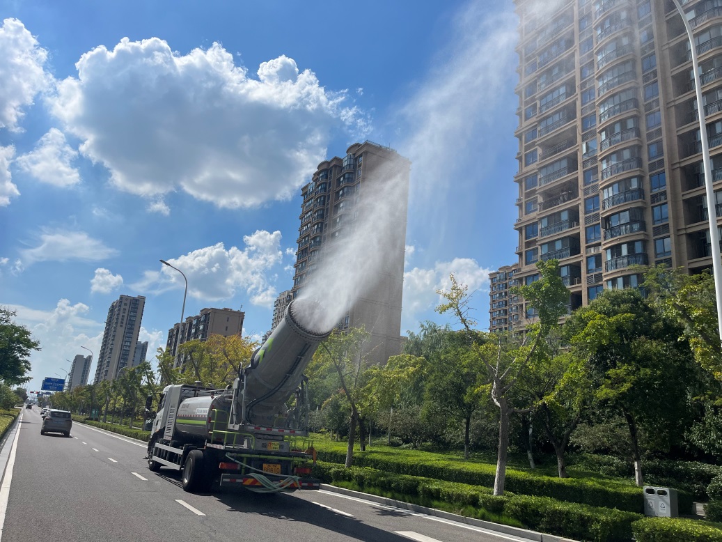 加大機(jī)械化作業(yè),降低工人作業(yè)強(qiáng)度。調(diào)整機(jī)械作業(yè)方式,啟動(dòng)“平面灑水、立體霧化”夏季作業(yè)模式,采用灑水車、霧炮車、洗掃車相結(jié)合的方式,增加道路灑水抑塵、清掃頻次,降低工人作業(yè)強(qiáng)度。
