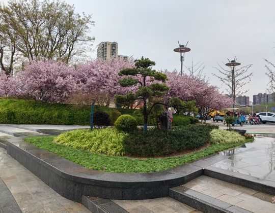 這塊占地面積僅38平方米的三角地塊,通過(guò)太湖石的點(diǎn)綴、紅楓與羅漢松的錯(cuò)落布局,輔以時(shí)令草花的季節(jié)性更替,詮釋了微型景觀設(shè)計(jì)中“以小見(jiàn)大”的設(shè)計(jì)手法,在方寸之間營(yíng)造出驚喜的視覺(jué)效果,為市民出行游玩注入“幸福因子”。