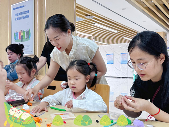 粘土DIY區(qū)同樣妙趣橫生。孩子們在工作人員的指導下發(fā)揮創(chuàng)意,用粘土捏出惟妙惟肖的彩色“粽子”,在實踐中感受文化魅力,收獲自信與成就感。