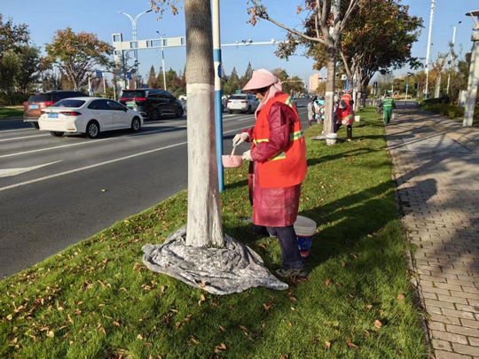隨著氣溫逐步降低,建發(fā)公司全面啟動樹木涂白工作,為道路、公園、廣場及景觀帶的喬灌木穿上抗凍防寒、抵御病蟲害的“防護(hù)衣”,以保障其安全越冬,提高保存率,進(jìn)一步擦亮城市生態(tài)底色。