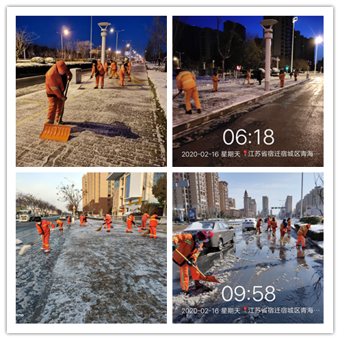 2月15日,宿遷市普降中雪,加上氣溫驟降,道路積雪結(jié)冰較為嚴(yán)重,給新冠病毒疫情防控帶來(lái)了諸多不便。為第一時(shí)間清除冰雪,恢復(fù)道路通行,園區(qū)城管局、建發(fā)公司提前部署、以雪為令,要求環(huán)衛(wèi)作業(yè)單位在做好疫情防控的同時(shí),全力開(kāi)展掃雪除冰工作,力保雪后道路暢通。