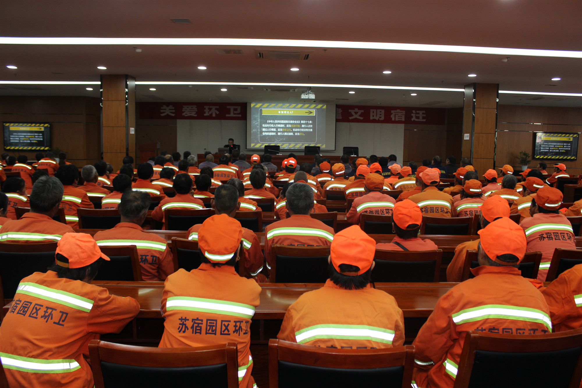 10月24日14時(shí)30分,園區(qū)邀請(qǐng)市交警大隊(duì)劉強(qiáng)警官為全體環(huán)衛(wèi)工人講了一堂專項(xiàng)交通安全知識(shí)講座,通過(guò)案例和理論相結(jié)合的授課,全面提高了環(huán)衛(wèi)工人的交通安全意識(shí)。安全專題講座后,還組織所有環(huán)衛(wèi)工人觀看了愛國(guó)題材電影《周恩來(lái)萬(wàn)隆之行》,增強(qiáng)了環(huán)衛(wèi)職工民族自尊心和自豪感,培養(yǎng)了他們的愛國(guó)情懷,激發(fā)他們干好環(huán)衛(wèi)工作,為建設(shè)文明宿遷添磚加瓦。