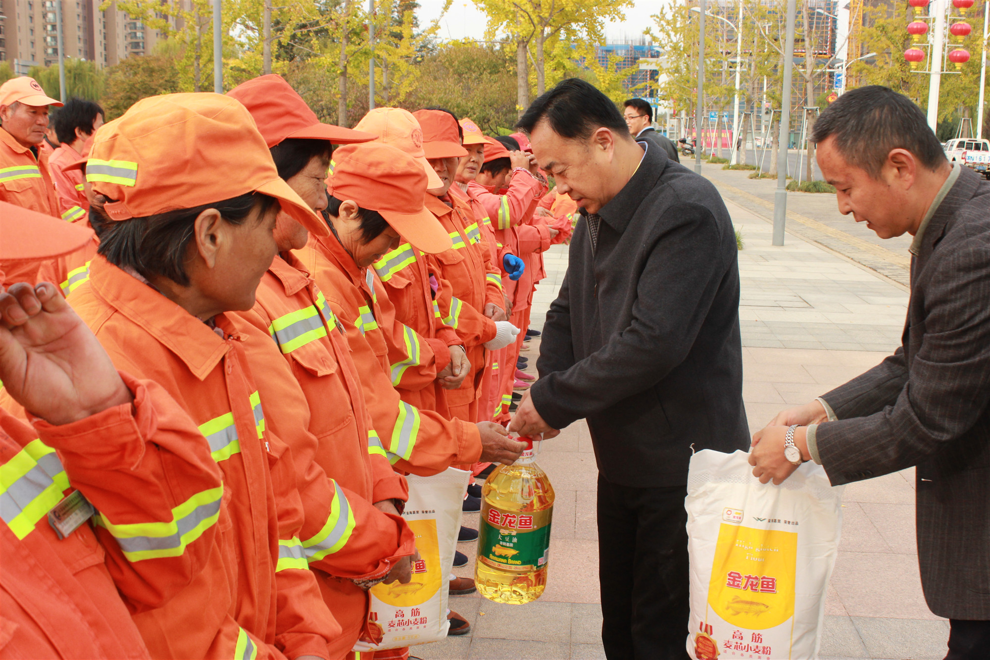 10月26日8時(shí)30分,園區(qū)黨工委委員、管委會(huì)副主任、規(guī)劃建設(shè)局局長(zhǎng)邢全男帶隊(duì),親切慰問了環(huán)衛(wèi)工人,并向她們送上了節(jié)日的慰問,感謝她們?yōu)閳@區(qū)環(huán)境衛(wèi)生作出了貢獻(xiàn),并向她們發(fā)放了慰問品。
