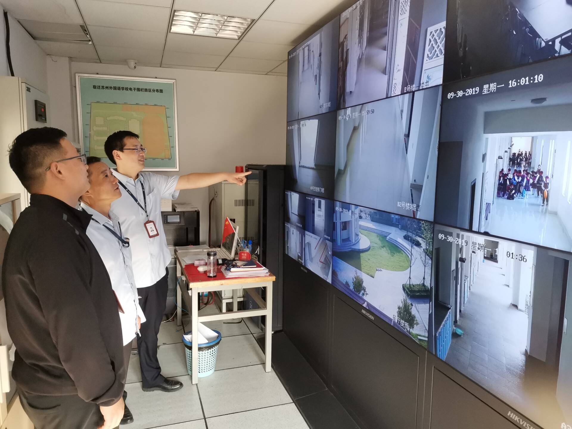本次檢查對南校區(qū)實驗室、教學(xué)樓、圖書館、高低壓配電房、消防監(jiān)控室、水泵房、食堂等處進(jìn)行檢查,詳細(xì)了解安全隱患整治、設(shè)備運(yùn)行和維護(hù)情況,并隨機(jī)調(diào)取觀看監(jiān)控視頻,檢驗監(jiān)控視頻的覆蓋區(qū)域和監(jiān)控報警系統(tǒng)的使用情況,對人防、物防和技防“三防一體”提出人員專業(yè)培訓(xùn)、視頻數(shù)據(jù)處理、運(yùn)行環(huán)境優(yōu)化等方面的要求。