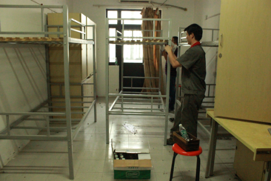 8月24日,處暑雖至,但天氣異常悶,光是站著不動就已經(jīng)大汗淋漓,而物業(yè)管理部的維修人員他們揮灑汗水,默默無聞地奮戰(zhàn)在一線,保障著園區(qū)公舍2號樓床鋪及時安裝完成。