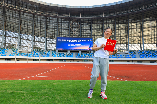 運(yùn)動場上,建發(fā)公司桑曉芳以5分57秒33毫秒領(lǐng)先第二名12秒之多的絕對優(yōu)勢斬獲女子青年組1500米田徑賽金牌。