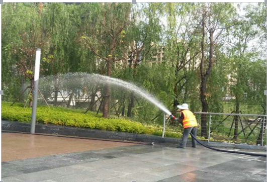一是隨著氣溫不斷升高,為確保苗木及時(shí)得到灌溉,養(yǎng)護(hù)單位多措并舉進(jìn)行澆水灌溉,各標(biāo)段除了使用的4輛10噸水車段循環(huán)澆水外,同時(shí)利用3臺水泵進(jìn)行澆灌,全力以赴完成綠化澆水工作。