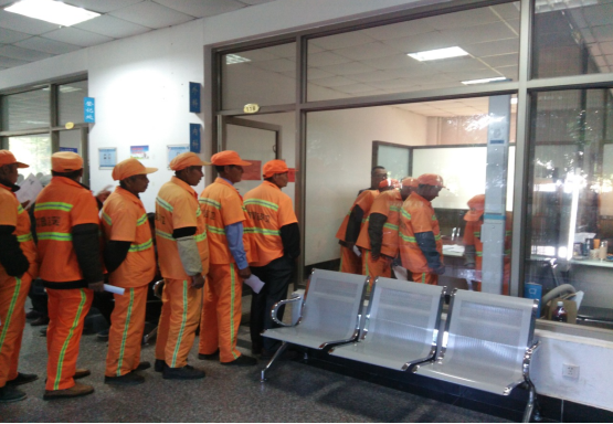 根據(jù)前一天的安排,環(huán)衛(wèi)工人早早來到集合地點(diǎn)統(tǒng)一乘車到了市疾控中心參加免費(fèi)體檢,拿著早一天分到的體檢明細(xì)單,緊張有序地進(jìn)行每一項(xiàng)檢查,外科、內(nèi)科、心電圖、、胸透、肝功能、腎功能等如此系統(tǒng)全面的健康檢查,對(duì)于他們中的大部分人都是頭一回。參加體檢的環(huán)衛(wèi)工人紛紛表示,此次體檢能夠讓他們更加了解自身的健康狀況,感謝政府的關(guān)心,我們將更加努力干好工作,使城市的環(huán)境更加干凈整潔。